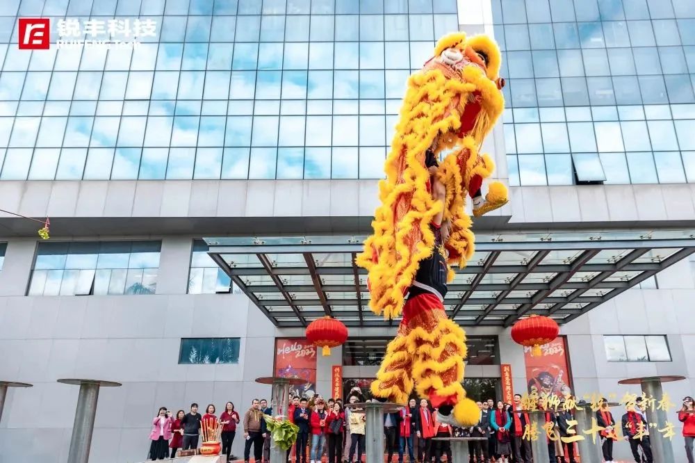 群狮攀高、采青接财、巡楼拜年、福传四方……一幅幅生机勃勃的景象跃然锐丰科技园区,喜悦散播到公司的每一个地方,同时意味着新的一年,锐丰科技也会以“展宏图、迎财旺、传吉运”的方式开启「锐」兔吉祥如意年。